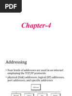 Physical (link) addresses, logical (IP) addresses, Port addresses, Specific addresses