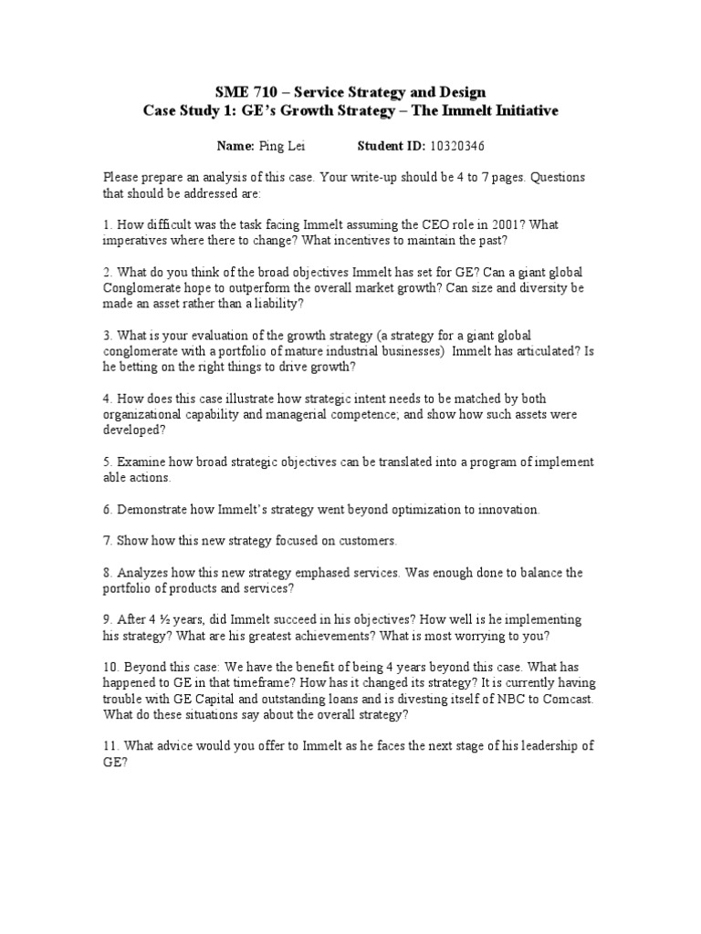 Case Study 1: GE’s Growth Strategy – The Immelt Initiative