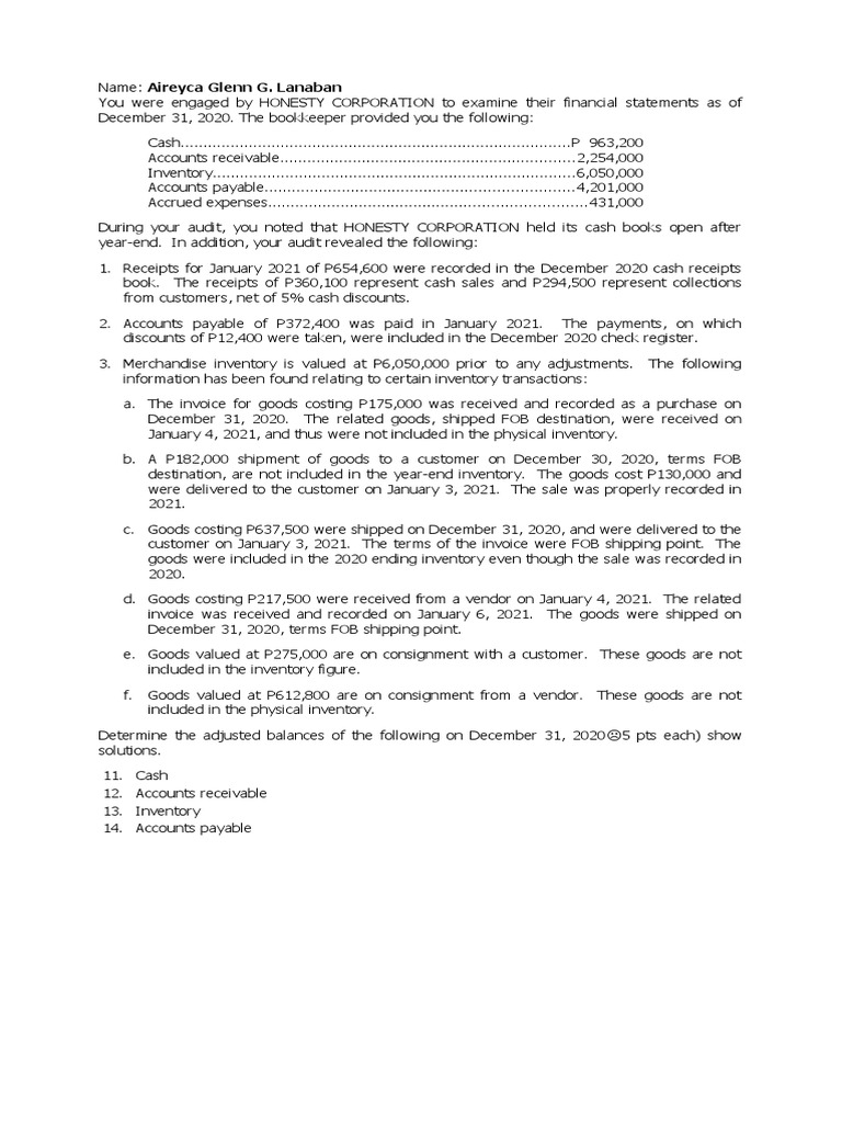 During your audit, you noted that HONESTY CORPORATION held its cash books open after