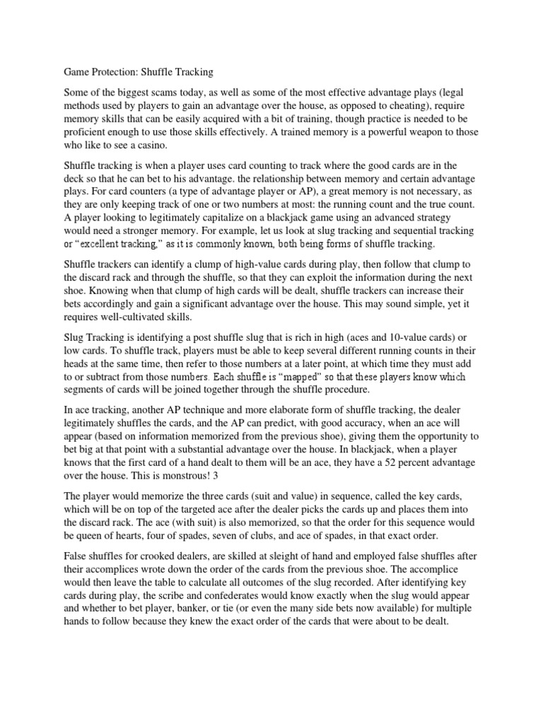 plays. For card counters (a type of advantage player or AP), a great memory is not necessary, as