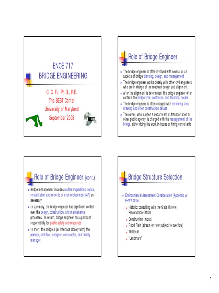 C. C. Fu, Ph.D., P.E. After the alignment is determined, the bridge engineer often