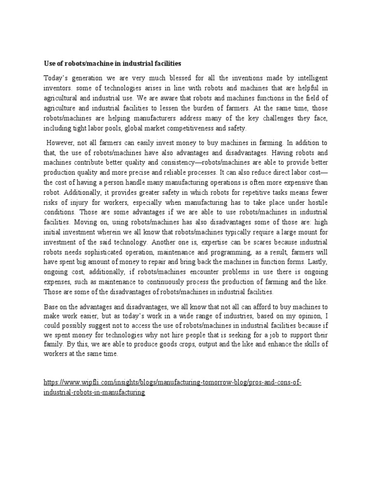 that, the use of robots/machines have also advantages and disadvantages. Having robots and