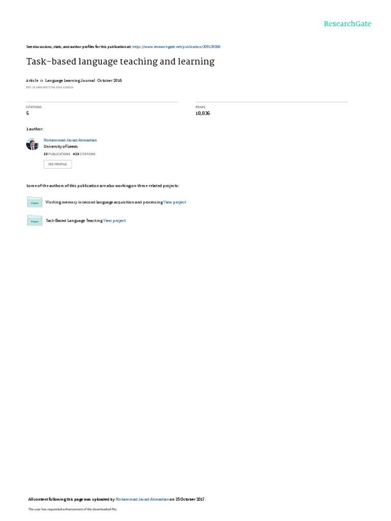 To cite this article: Mohammad Javad Ahmadian (2016) Task-based language teaching and