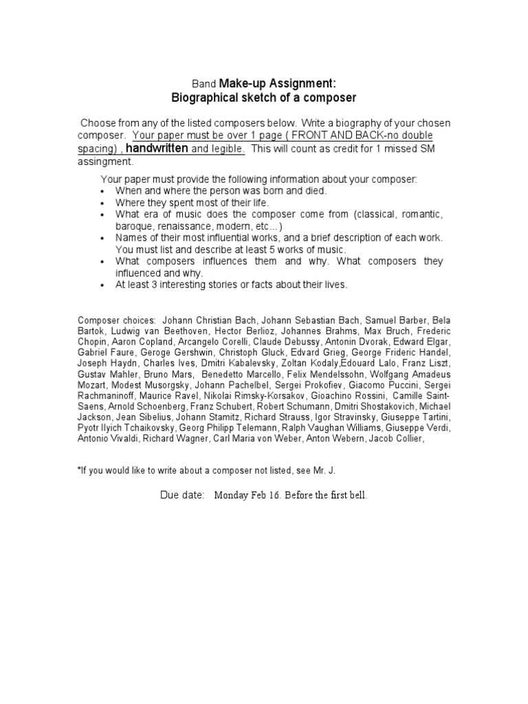 composer. Your paper must be over 1 page ( FRONT AND BACK-no double