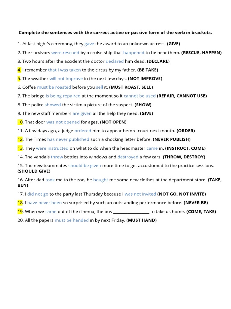 Complete the sentences with the correct active or passive form of the verb in brackets.