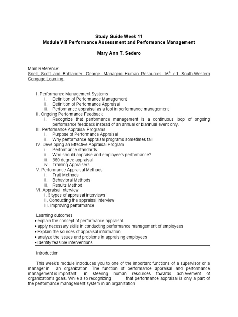 Module VIII Performance Assessment and Performance Management