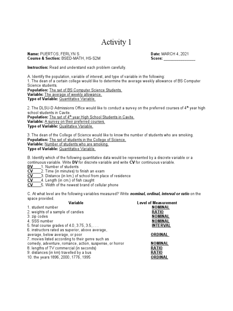 Name: PUERTOS, FERLYN S. Date: MARCH 4, 2021