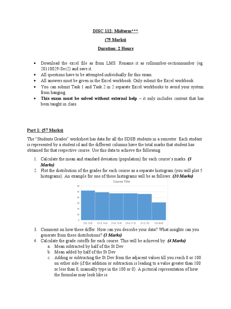 4. Calculate the grade cutoffs for each course. This will be achieved by: (4 Marks)