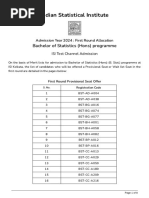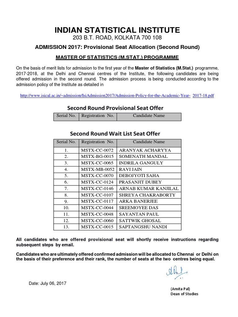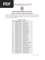 On the basis of merit lists for admission to the first year of the Master of Statistics (M.Stat.) programme,
