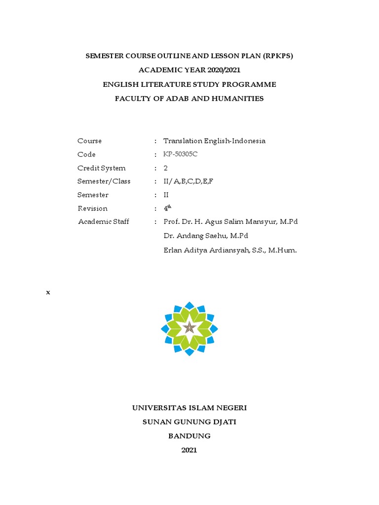 Course/Code : : Translation English – Indonesia (KP-50305C) Credit ::2 Meeting : : 15th