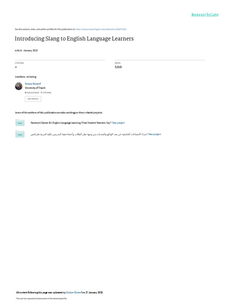 Recent research showed that using slang in the English classroom might have positive effects on the language learners (Mazer &
