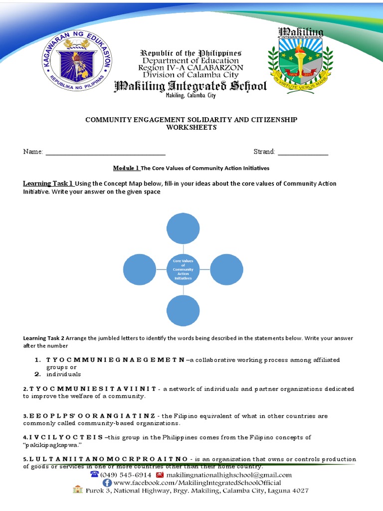 Learning Task 1 Given the diagram below, reflect on your own community by writing and listing down the current