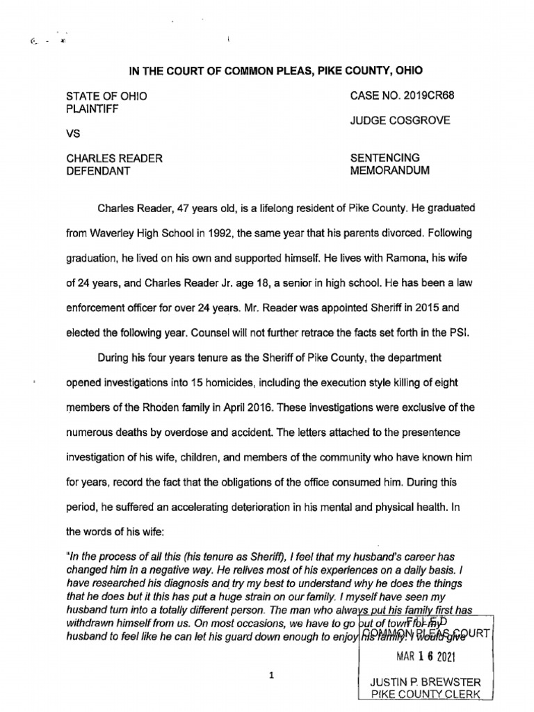 Defense attorney recommendations for sentencing of former Pike County Sheriff Charles Reader
