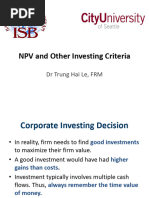 cash outflows. NPV is used in investment appraisal to analyze the profitability of an
