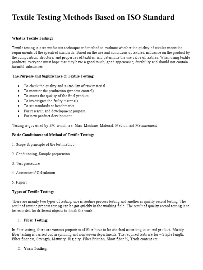 and the goods produced by them. These standards are called ISO textile testing standards.