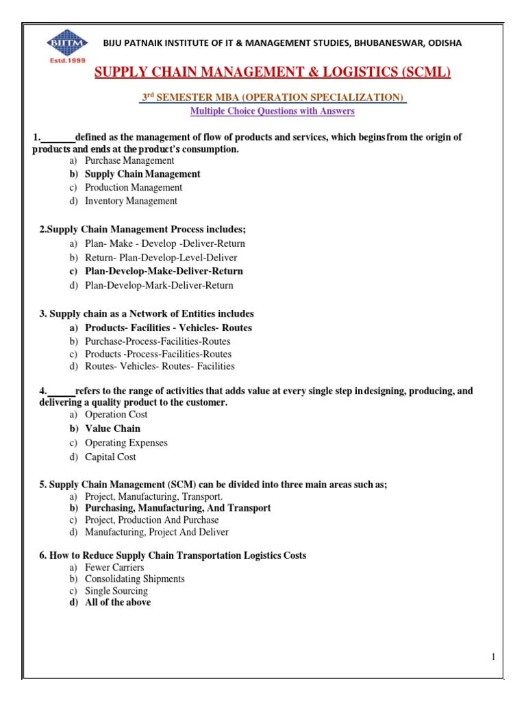 SUPPLY CHAIN MANAGEMENT & LOGISTICS (SCML)