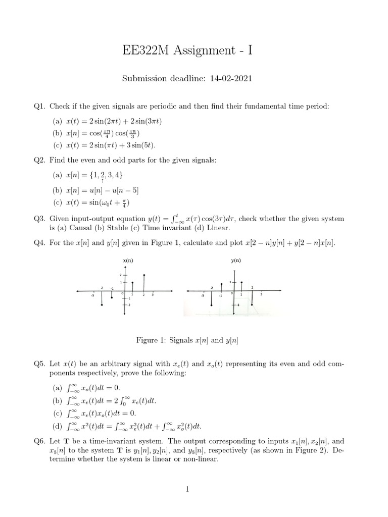 Q6. Let T be a time-invariant system. The output corresponding to inputs x1 [n], x2 [n], and