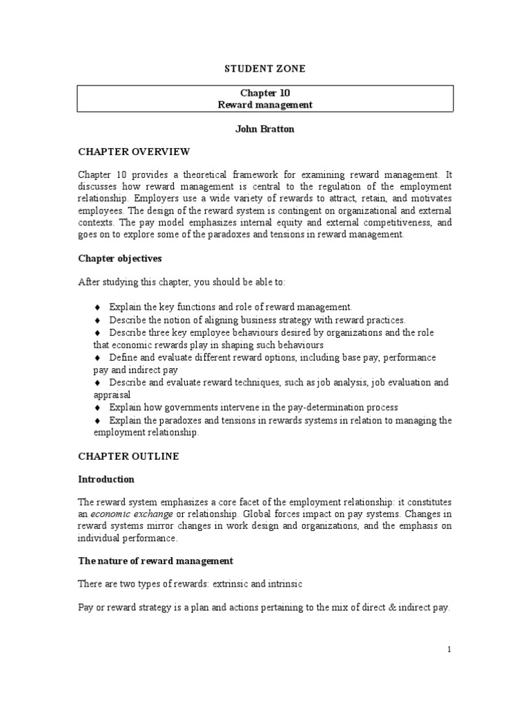 Chapter 10 provides a theoretical framework for examining reward management. It