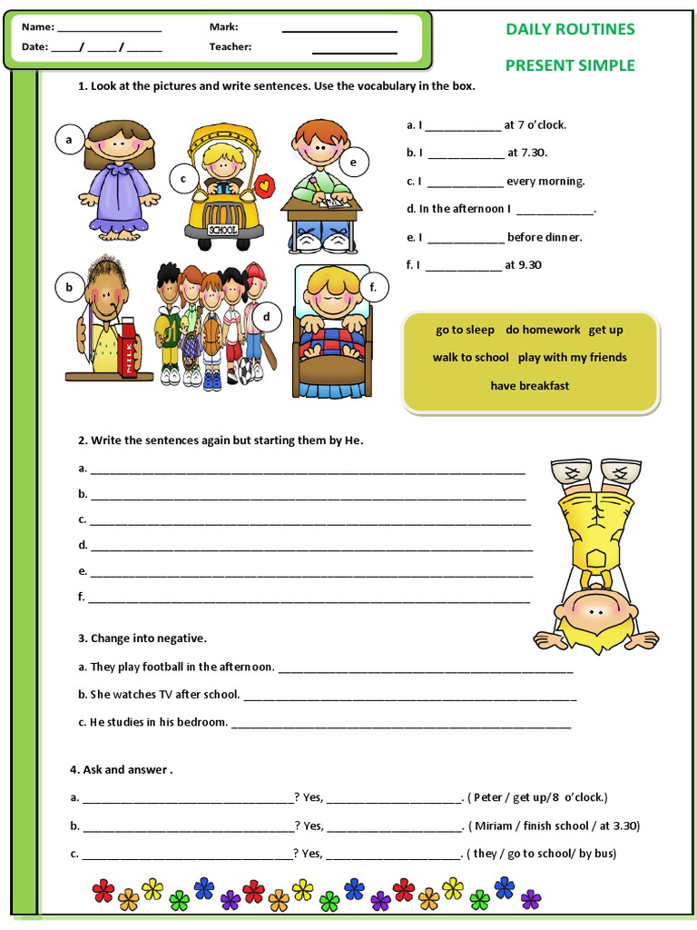 a. _________________________________? Yes, _____________________. ( Peter / get up/8 o’clock.)