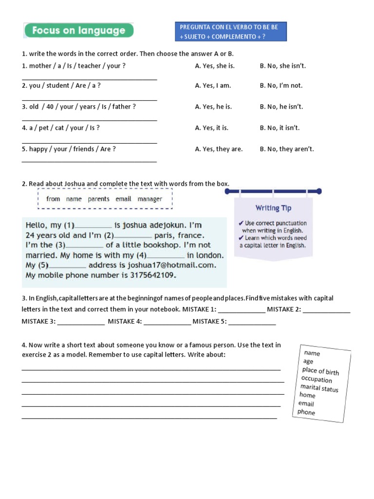 PREGUNTA CON EL VERBO TO BE BE