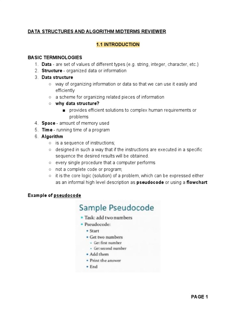 DATA STRUCTURES AND ALGORITHM MIDTERMS REVIEWER