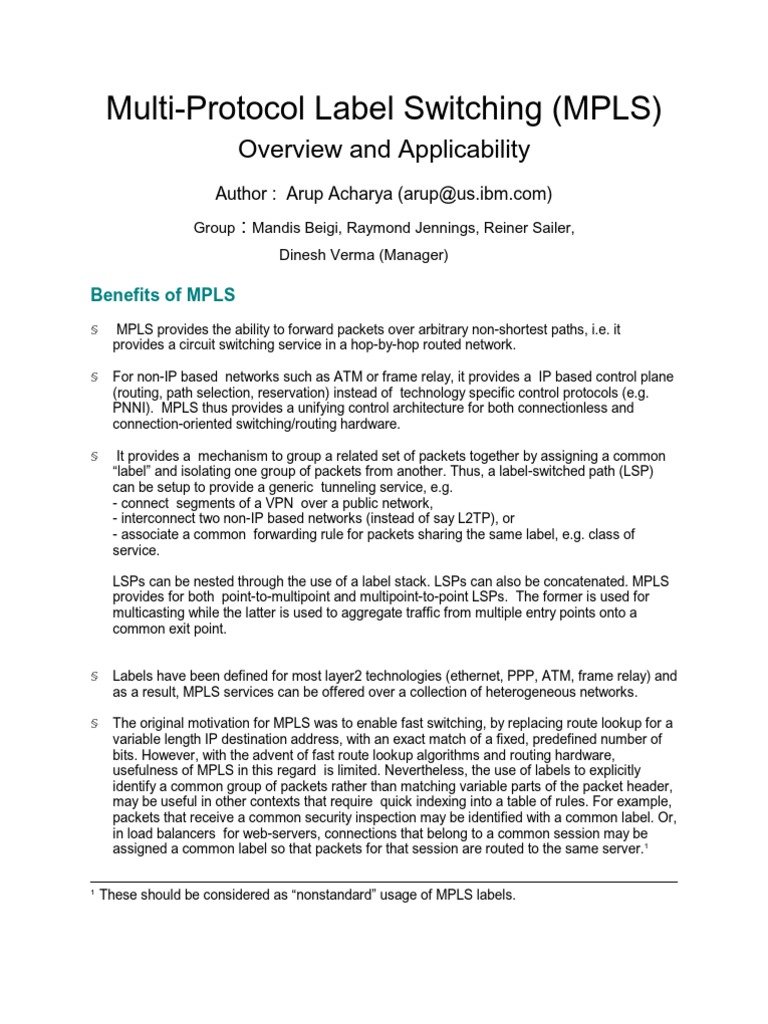 MPLS may offer solutions to both these issues within the enterprise networks. First, the MPLS