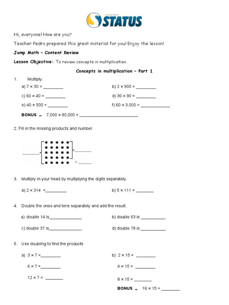 Lesson Objective: To review concepts in multiplication.