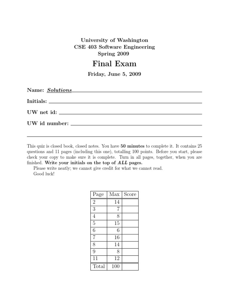 This quiz is closed book, closed notes. You have 50 minutes to complete it. It contains 25