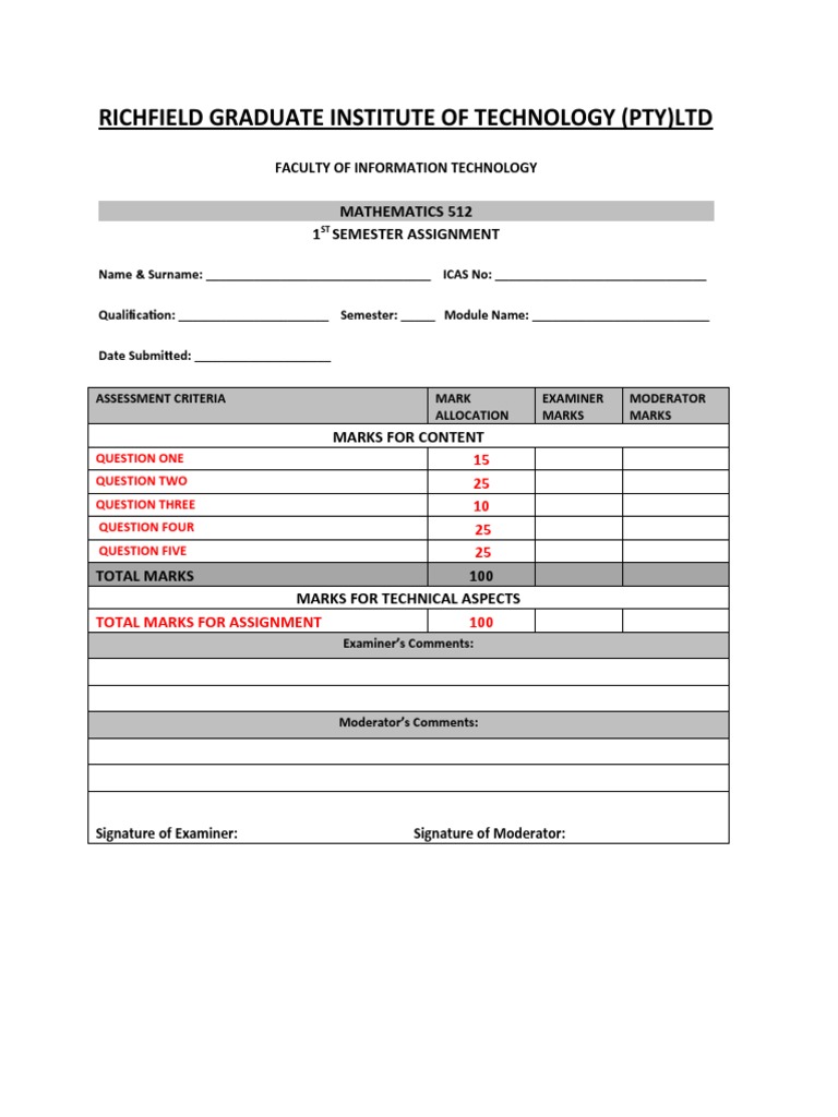 ASSESSMENT CRITERIA MARK EXAMINER MODERATOR