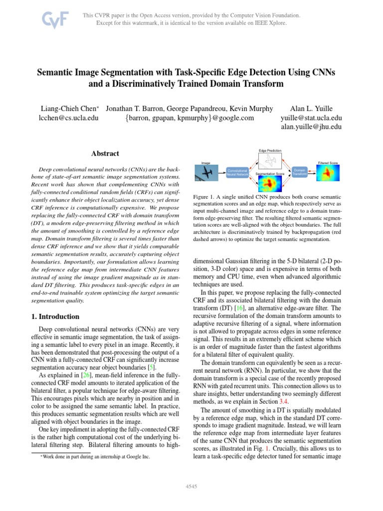 CNN with a fully-connected CRF can significantly increase The domain transform can equivalently be seen as a recur-
