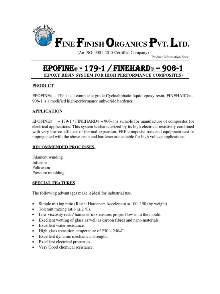 EPOFINE® – 179-1 is a composite grade Cycloaliphatic liquid epoxy resin, FINEHARD® –
