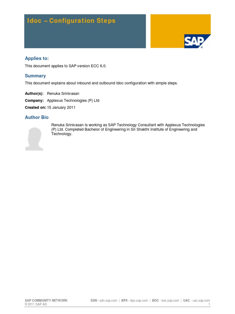 This document explains about inbound and outbound Idoc configuration with simple steps. Download Detail Document in Word
