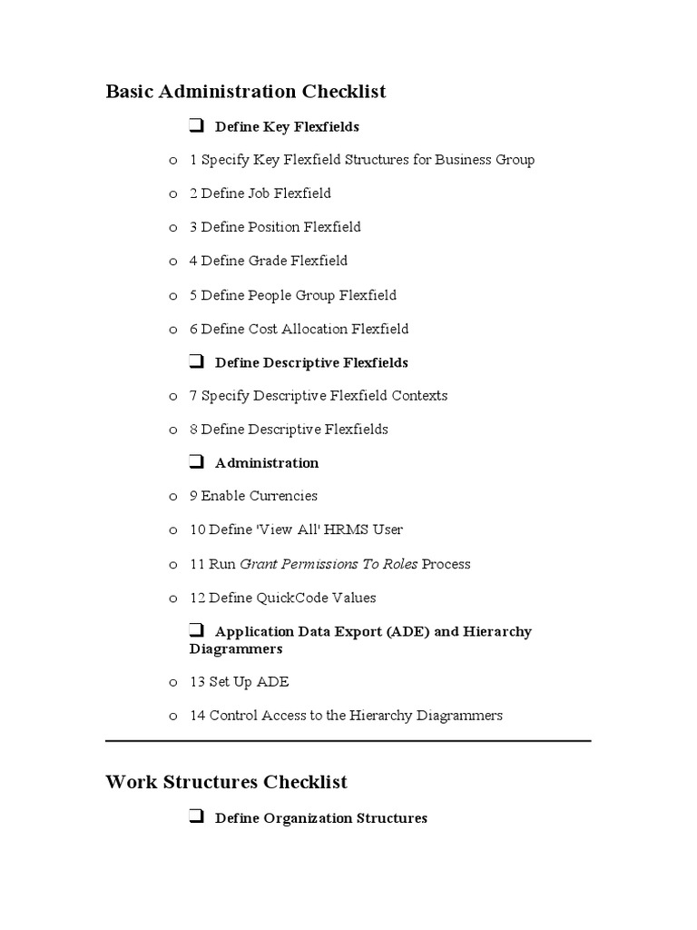 Work Structures Checklist