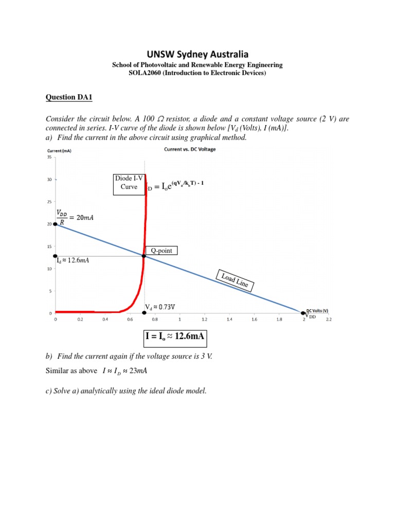 connected in series. I-V curve of the diode is shown below [Vd (Volts), I (mA)].