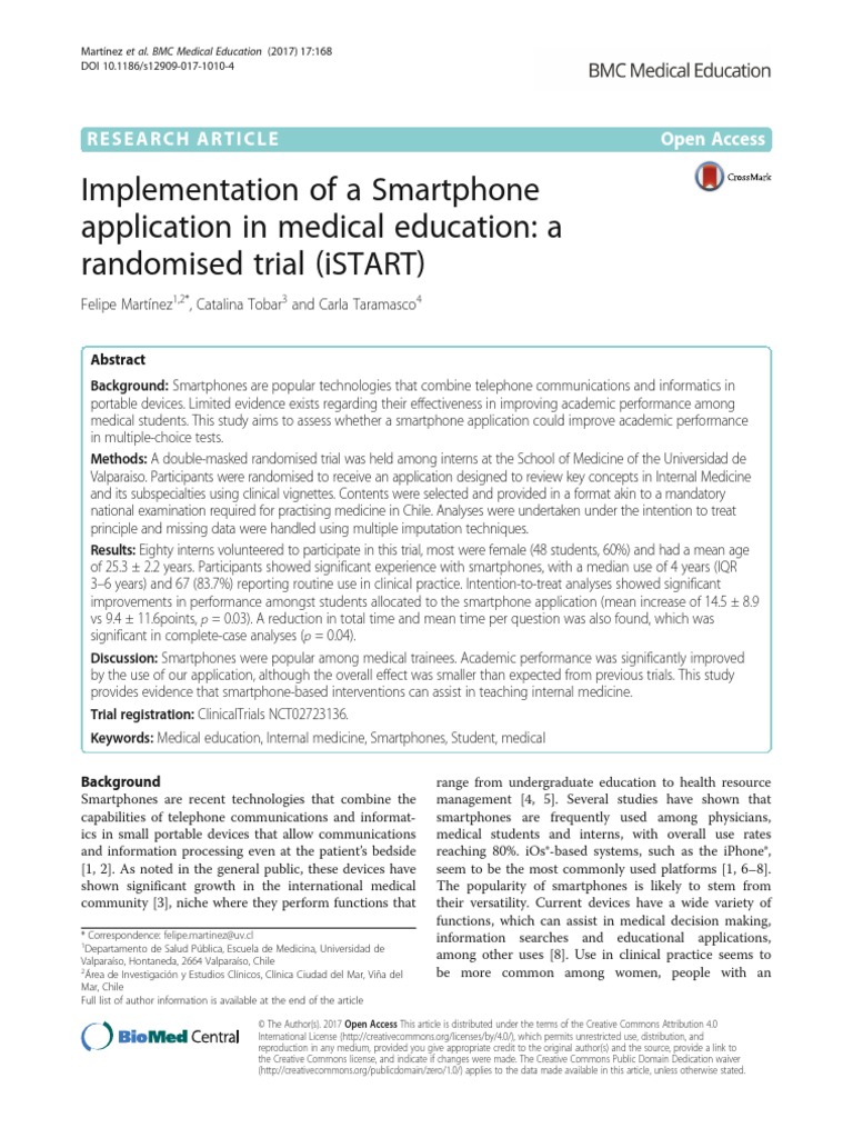 Implementation of A Smartphone Application in Medical Education: A Randomised Trial (iSTART)