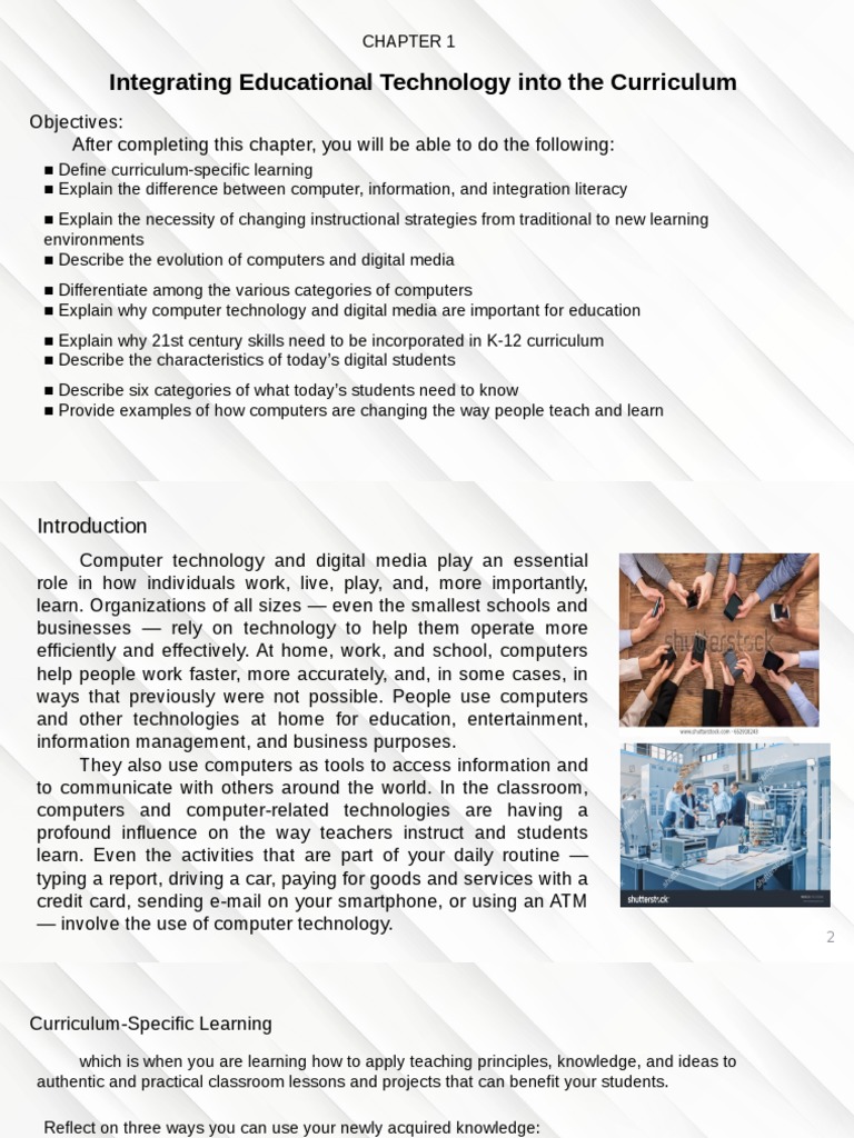 (2) using technology as a productivity tool in your classroom, and, most importantly,
