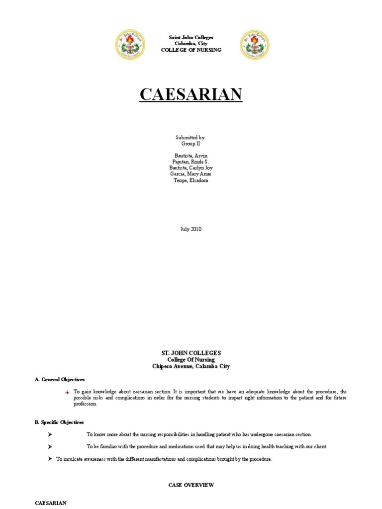 Caesarian: Saint John Colleges Calamba, City College of Nursing