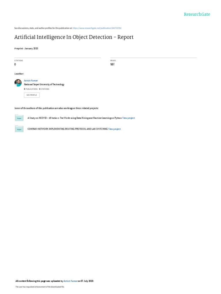 report I mainly focus on AI and Object detection.