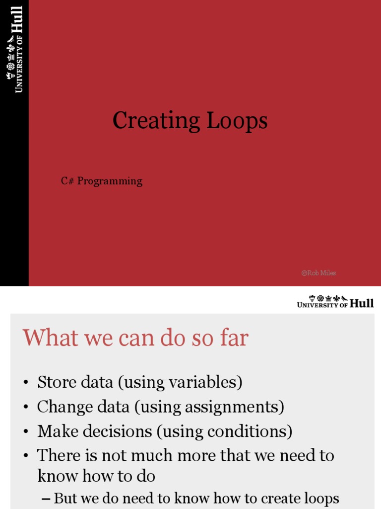 Chapter 6.2 : Loops 11-Oct-13 ©Rob Miles 2
