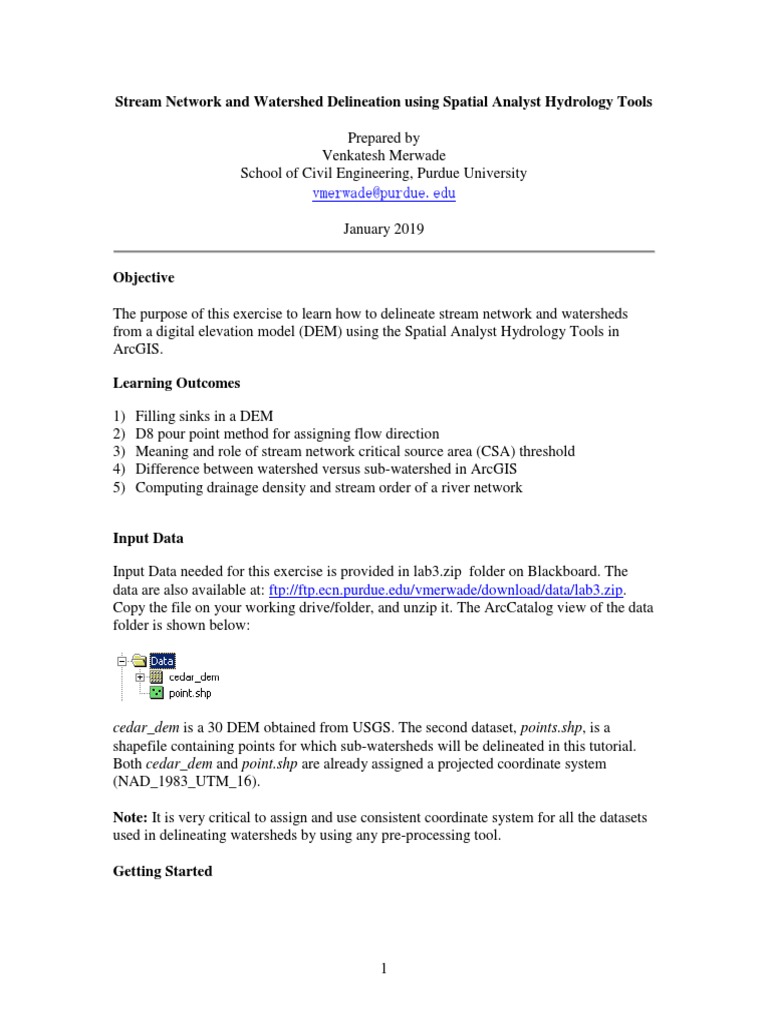 The purpose of this exercise to learn how to delineate stream network and watersheds