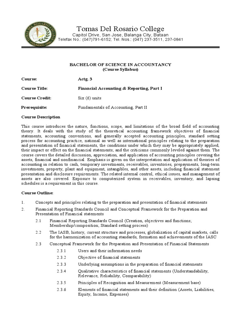Course Title: Financial Accounting & Reporting, Part I