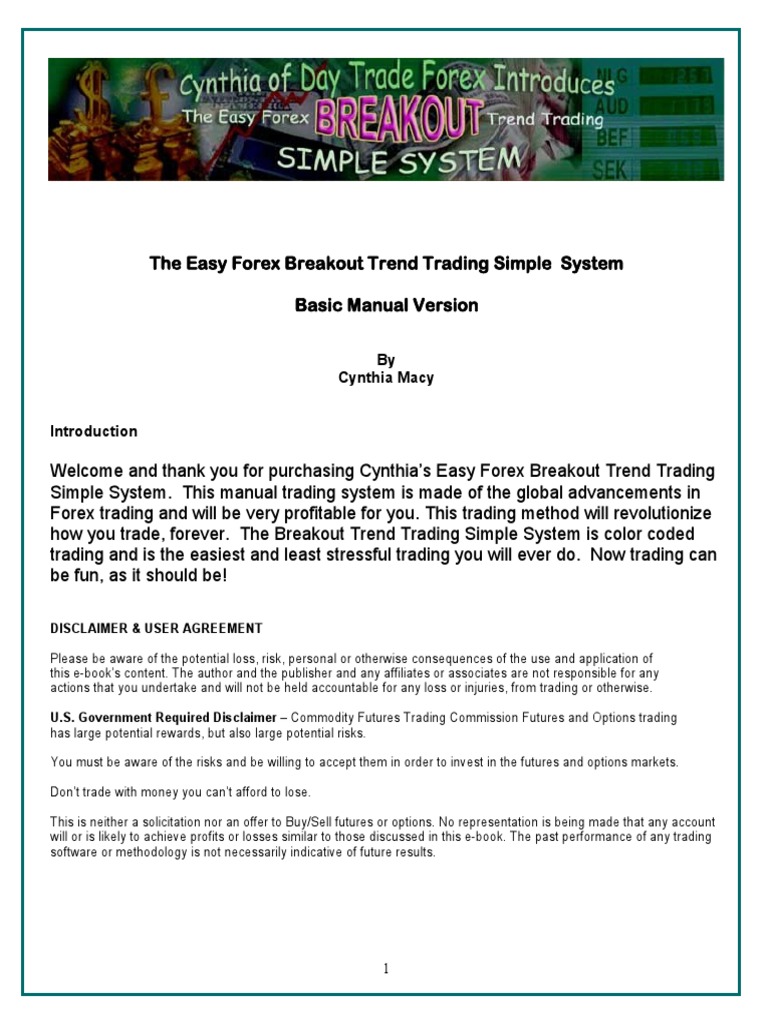Welcome and thank you for purchasing Cynthia’s Easy Forex Breakout Trend Trading