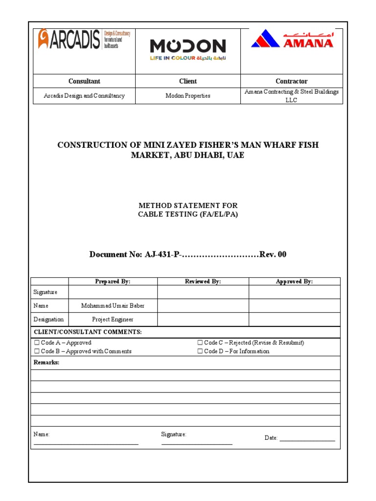 This method statement describes the method of storage, handling and Installation of fire alarm