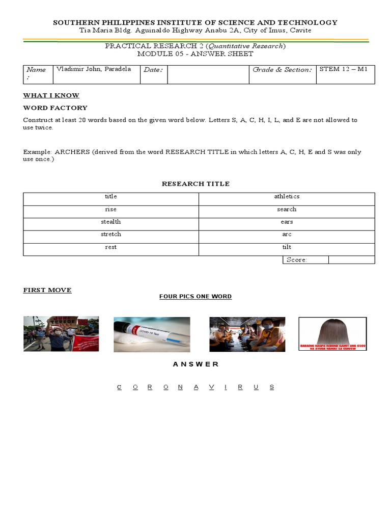 Name Vladimir John, Paradela Date: Grade & Section: STEM 12 – M1