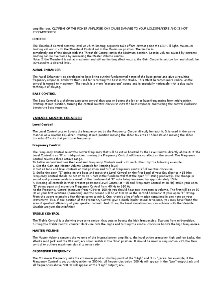 control is turned to maximum. The result is a more "transparent" sound and is especially noticeable with a slap style