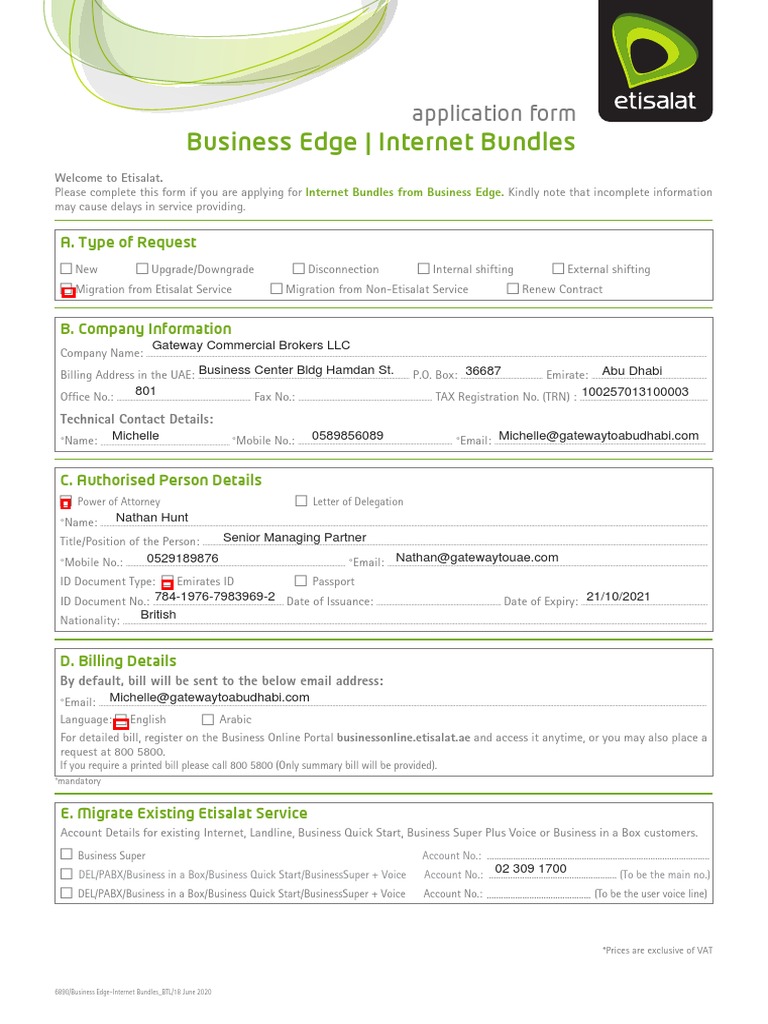 *In case of migration from non-Etisalat service.