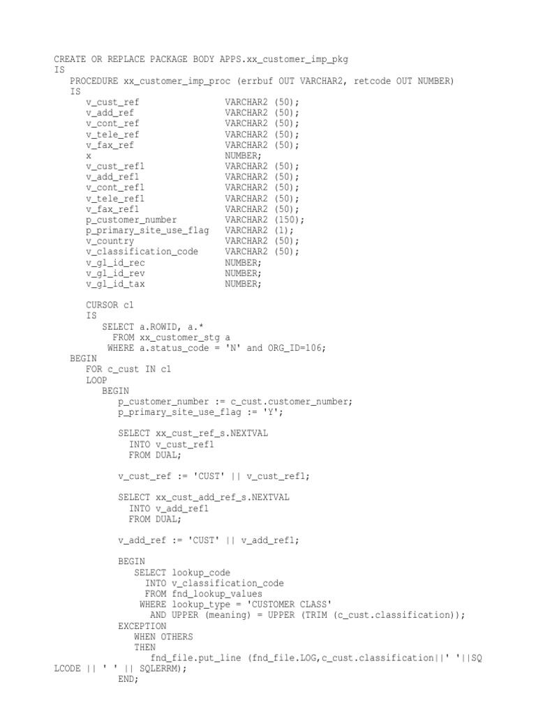 PROCEDURE xx_customer_imp_proc (errbuf OUT VARCHAR2, retcode OUT NUMBER)