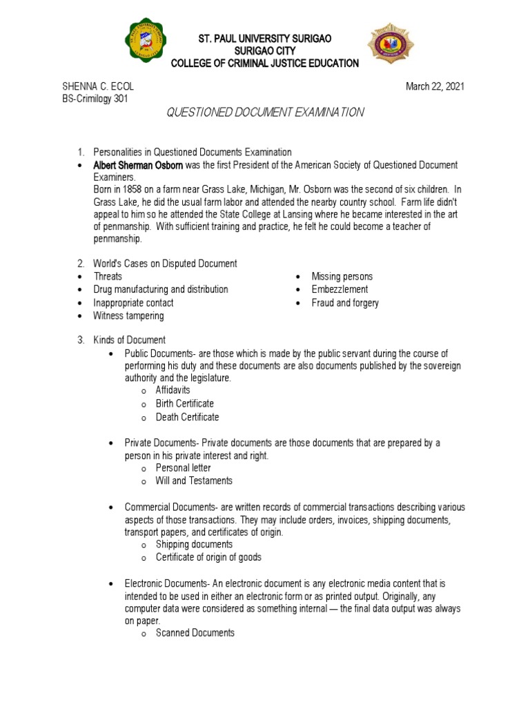 Albert Sherman Osborn was the first President of the American Society of Questioned Document