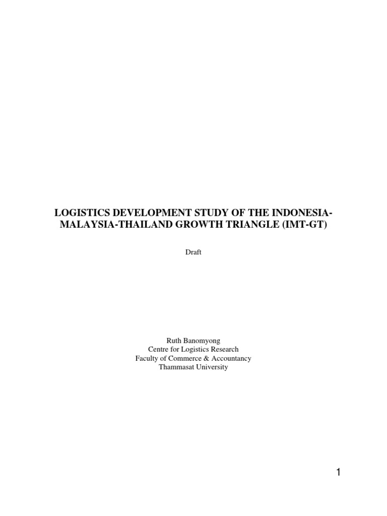 1 “For IMT-GT, the corridor approach will (i) provide focus and serve as a catalyst to the development and growth