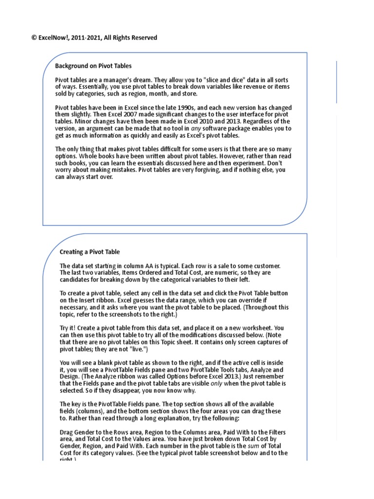 Background on Pivot Tables